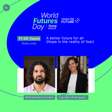 Since 2021, Teach the Future has hosted the Young Voices Edition of World Futures Day to ensure that young people are actively involved in shaping future discussions. Every hour, young leaders and futurists co-host sessions to explore emerging trends, challenges, and possibilities. This platform empowers young people to share their ideas, be heard, and contribute to building the future.